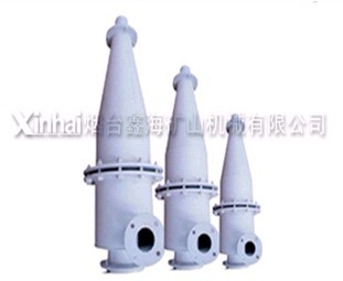 2)水力旋流器。水力旋流器是利用離心力來加速礦粒沉降的分級設備,它需要壓力給礦,故消耗動力大,但占地面積小、價格便宜,處理量大,分級效率高,可獲得很細的溢流產(chǎn)品,多用于二段閉路磨礦中的分級設備。